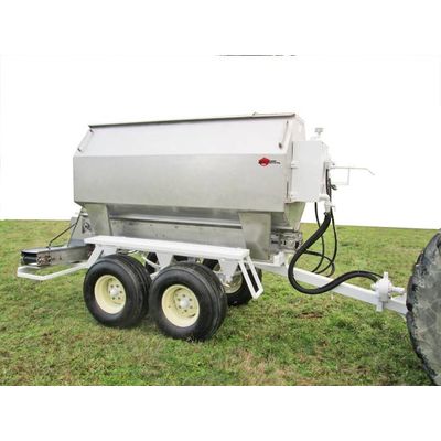 Whatcom Manufacturing`s Stainless Steel Fertilizer Spreaders are specifically designed for the BERRY grower. Extra narrow width and higher capacity will accommodate mature fields and minimize time and trips required to cover larger acreage plantings. Our twin belt discharge evenly spreads fertilizer on two rows simultaneously. This feature in conjunction with the ground driven floor chain provides for concise application rates regardless of ground NP-300 speed.