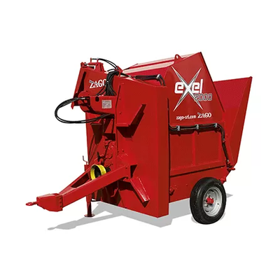 EXEL 2000 is a machine for chopping and distributing dry products for bedding, kennels or troughs. The EXEL 2000 straw blower is an equipment for processing dry fibrous products (straw, maize stalks, hay, etc.) packed either in round or prismatic bales to be distributed on bedding, in bunks or in troughs.