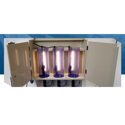 The Zebcare Artemia Hatching System is a specialized solution designed for research facilities focused on aquatic life. This system is tailored to hatch Artemia, commonly known as brine shrimp, which are a crucial food source in primary aquatic research. The system incorporates three transparent plastic hatching cones within a durable polypropylene lightproof cabinet. Each cone is Ø 160 mm and 500 mm in height, with a six-liter capacity. Equipped with a drain valve, aeration, and LED lighting, the system ensures optimal hatching conditions. To facilitate easy harvesting, the system features a collecting tray and a beaker with a 100-micron stainless steel mesh. The electric switch allows for coordinated control of lighting, heating, and aeration. This compact system is engineered for placement alongside existing zebrafish husbandry systems and requires a connection to water supply and drainage. Zebcare recommends the use of Great Salt Lake Artemia cysts, leveraging its inventory for rapid delivery.
