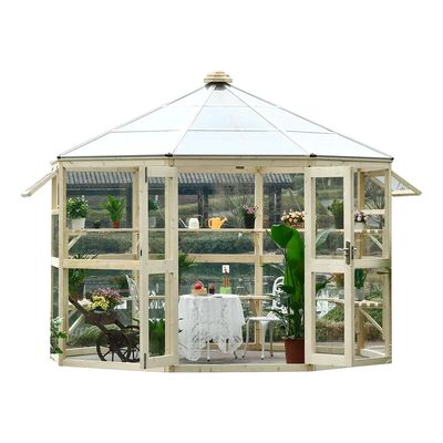 Product Description: Our WG-Hexagonal 140x140x302cm Roof Ventilated Aluminum Wooden Glass Greenhouse is made of high quality aluminum alloy and wood, which provides excellent durability and aesthetic appeal. It features a hexagonal design that makes full use of space and provides you with a comfortable, quiet and welcoming growing environment. The greenhouse is designed with vents on the top, which can effectively regulate the temperature and humidity inside, allowing plants to receive sufficient sunlight and air, thus improving the quality and yield of plants. In addition, it uses aluminum frame and glass wall to ensure sufficient light exposure inside the greenhouse, while also maintaining the temperature and humidity inside the greenhouse. Specification: Product Name: WG-Hexagonal 140x140x302cm Roof Ventilation Aluminum Wooden Glass Greenhouse Exterior size: 140x140x302cm Material: aluminum alloy and wood Glass: single-layer glass Scope of application: home, agriculture, gardening.Wooden Green House - WG250-4 240x250x280cm Ps Board Wooden Glass Greenhouse