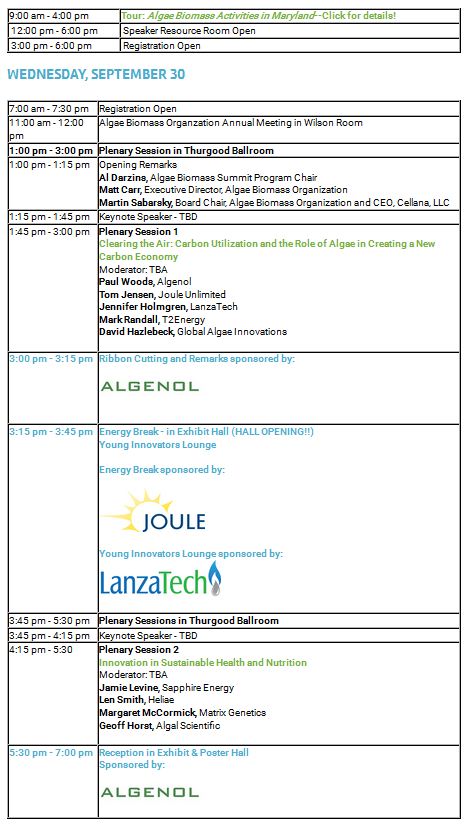 The Algae Biomass Organization is busy coordinating an exciting agenda for the 2015 Algae Biomass Summit in Washington, DC, September 29-October 2. Check back often for updates!