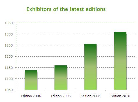 The last edition of the biennial exhibition attracted 1,309 exhibitors from 25 countries over a net exhibition area of 65.499 square metres and 130.040 visitors from 81 countries.