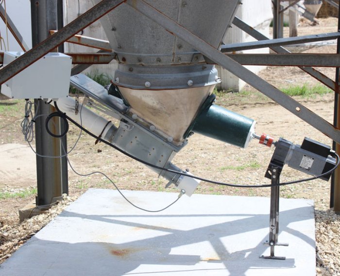 Unlike other feed bridging solutions commercially available, Osborne’s Flow Pro system uses neither high-frequency vibration nor blunt impact to bin boots or collars to ensure continuous feed flow. Instead, Flow Pro’s rotating agitator provides gentle agitation inside the bin boot as automatic feed delivery systems operate. The rugged auger – making about 100 revolutions per minute (RPM) – ensures continuous flow without compromising feed quality. Though the system provides steady and gentle agitation, clumps and compacted feed from high humidity or moisture are easily destroyed before they reach feed lines, preventing plugging issues. Flow Pro also eliminates bin wear-and-tear caused by vibrating systems or impacting hammers and mallets. Independent product testing confirms first in, first out flow of a variety of feedstuffs, with no adverse effects on bins or performance of automatic feed lines.