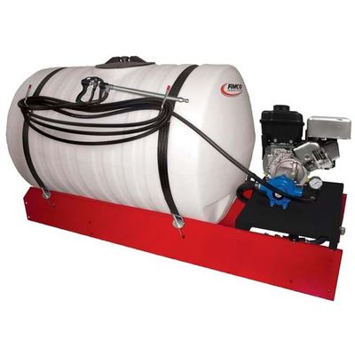 The FIMCO 150 Gallon Skid Sprayer is built for large liquid coverage that can be loaded onto trailers or trucks for any type of application. The polyethylene, UV resistant, high density roto molded tank has an 8 inch lid for easy access and is completely drainable. This model truck bed sprayer features a Briggs & Stratton 205cc Gas Engine with 8 Roller Pump. The 22" Pro Series Spray Wand with adjustable spray pattern no drip shut-off tip distributes up to 45 feet of horizontal spray, 33 feet of vertical spray and comes with 25 feet of 3/8 inch hose. This Skid Sprayer is built on a welded powder coated steel chassis and is capable of being mounted directly on a flatbed trailer, pickup bed or can be palletized. This high performance skid sprayer that allows easy, accurate and consistent liquid application of lawn care products. Designed to go anywhere to control weeds, insects and diseases on lawns, acreages, pastures, as well as spray trees and control burns.