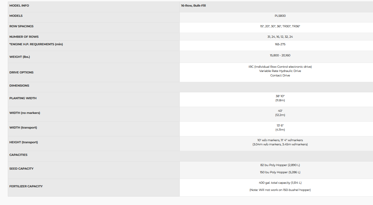 Great Plains - Model PL5800 -16-Row Bulk-Fill Planter