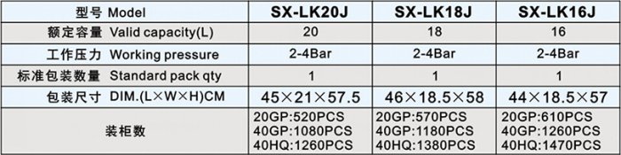 Product Service: Knapsack manual sprayer. Product model: SX-16J,18J,20J.