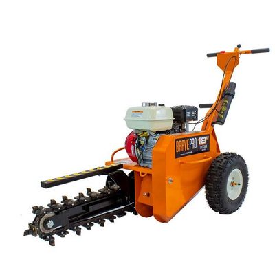 The Brave Pro 18-in. trencher is used for digging through compacted gravel and soils to install electric wires, gas lines, water lines, and more. A reliable Honda engine powers the BRPT18 and is compact enough to fit through most gates and doorways, making it easy to transport from job to job. The max 18-in. depth and 3-in. trench width dig deep enough for laid pipes and wires to remain safe underground.