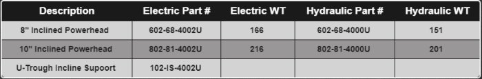 U-trough inclined powerheads are designed to operate with the 1750 RPM (or less) motors. The recommended motor sheave sizes are as follows: 8" incline powerheads: two-groove 3.0"-3.75"" 10" incline powerheads: three-groove 3.0"-3.75"