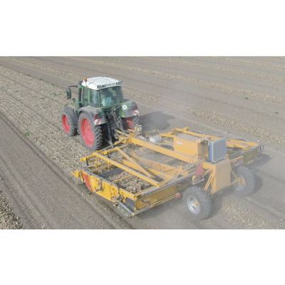 Samon’s three-bed onion windrower has been developed to increase capacity. In this model, three harvesting-axle harvesters are mounted in a drawn frame. The machine is equipped with a steered axle with automatic center position. An automatic depth control is placed on each harvesting element. This allows the lifting elements to follow the bed independently of each other. The onions are deposited in two swaths behind the outer two harvesting elements. The machine can be easily adjusted as required by four potentiometers in the control box. The machine is available in track widths of 1.50m, 1.80m and 2.00m. Of course there are several options available for this machine, if you have any questions about this, please contact your dealer.