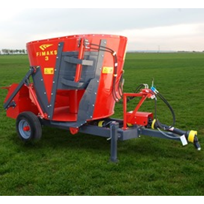 FMV 3 model mixer feeder is an ideal solution for farms with 20-60 animals. The simple, durable and lightweight construction of the machine makes it the best equipment for small dairy and cattle farms.The design of the vertical auger equipped with special designed cutting knives cuts the round and square bales at a short time and creates an homogeneous ratio mixed with other feed and additives. There are no dead spots because of the design of the auger and bucket so it is more hygenic compared to other mixers on the market. Also there is no feed left in the bucket after unloading.