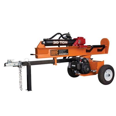 The Brave 30-ton log splitter allows you to split vertically and horizontally. Easily split thick green logs with 30 tons of splitting pressure — ideal for professionals or homeowners who rely on their splitters often. With a reliable Honda GC engine, standard log cradle, log dislodger, and convenient ball hitch, this splitter gives you more bells and whistles for less cost than a rental-grade splitter.