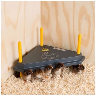 The WP-30T has legs that can easily be adjusted in height. This ensures that the temperature under the plate is always at the right level for your chickens. The Triangle Heating Plate is very low energy and up to five times more efficient than a traditional heating lamp. Thanks to a temperature and resistance fuse, you are assured of a very safe product. Olba`s Triangle Heating Plates are made of strong and durable ABS plastic and therefore have a long life span.