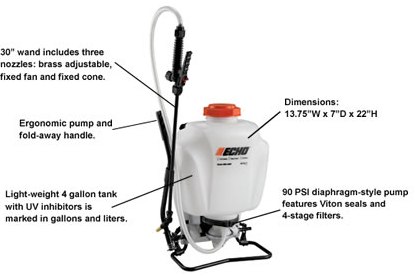 4-gallon capacity, backpack sprayer with diaphragm-style pump pressurizes to 90PSI.
