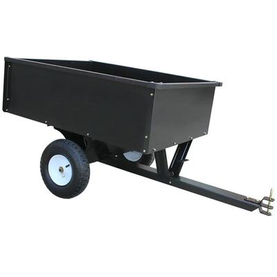 Foot pedal release mechanism for easy dumping. Rust resistant powder coat finish. Removable tailgate for convenient loading and unloading. Works with lawn/garden tractors and ATVs. Ideal for tools, animal feed, landscaping materials and fire wood.