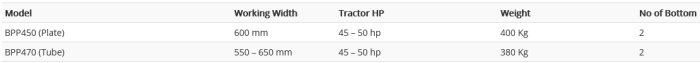 Salient Features: To invert the soil through spiral shape mould board. Adjustable bar point for deep ploughing. Heavy duty hydraulic cylinder. Two way entry angle adjustment. Heavy duty needle roller bearing. Forged axle rotating. Boron steel board. EN 8 share & bar point. 40 mm thickness arm support.