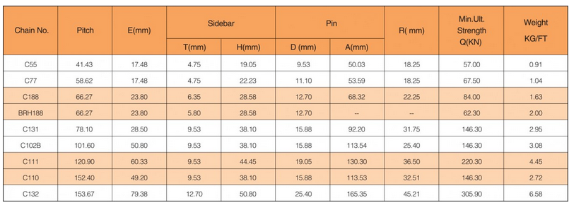Product Features: Combination chains (C Type & BRH Type).