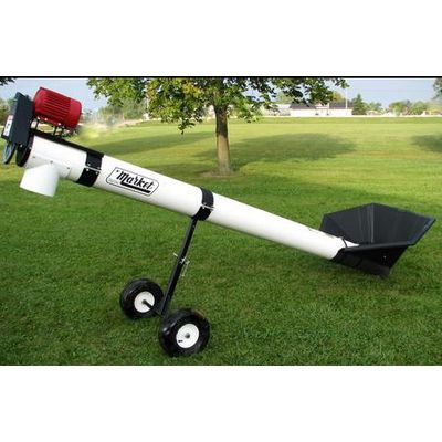 The Market Transfer Auger is ideal for high moisture corn. It was originally designed to fill auger legs and blowers where tight fits are a problem. The tube is a heavy gauge PVC with a polyethylene spout and fill hopper. Available in 12` lengths. Maximum discharge height is 60". Either electric or hydraulic kits are available.