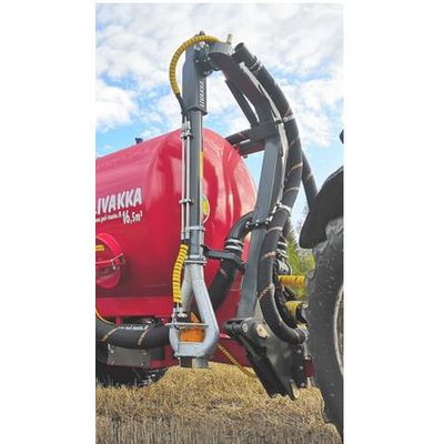 6″ front-mounted pump crane is mounted on the front of the drawbar by plate fitting. Because of plate fitting, it can also be easily retrofitted on older slurry tanker models. Filling on the right side of the tanker.