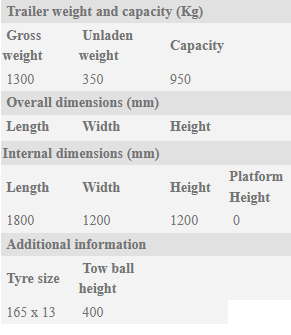 The 12LT is fitted with full width independent suspension axles and auto-reversing brakes. A side inspection door, ramp side gates, a front jockey wheel, locking hitch and spare wheel are all standard.