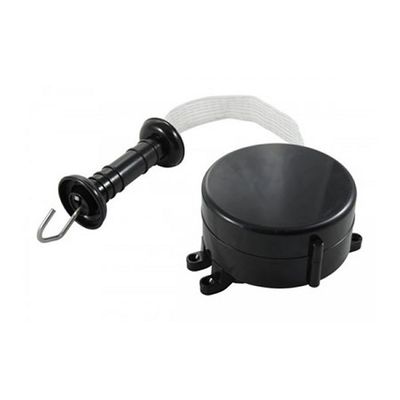 For fast installation of flexible gates and partitions on pastures, drive paths, passage ways and paddocks, polyrope or polytape restract automatically and are protected inside the housing. Mounting accessories and gate handle are included.
