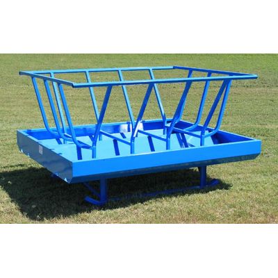 12 Ga. Feed pan with feed saver lip. 12 Ga. 1-1/2" square tube hay cage. 3" channel main frame. Rectangular tubing skids. Tow loops on front and back. Large drain holes.