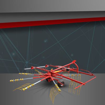 Pivoting headstock with stabilizer shock absorbers: The pivoting headstock (3 pt. attachment) gives the machine increased mobility and agility around bends and flat land. Helps to make swaths well-formed and aired. Stabilizer shock absorbers stabilize the machine when it is lifted. And also the machine is guaranteed not to be under-run and provides a smooth ride for the best quality raking.