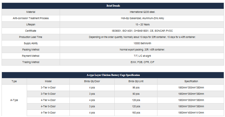 The A-type automatic layer cage system gets its name from its frame, which looks like the letter “A”. Its trapezoidal frame ensures stability. But it typically only has 3 to 4 tiers due to this shape. The Livi A-type layer chicken cage system is equipped with automatic systems for feeding, drinking, manure removal, egg collection, and environmental control. These layer chicken cages allow farmers to improve their egg production and maintain a profitable and sustainable poultry business.