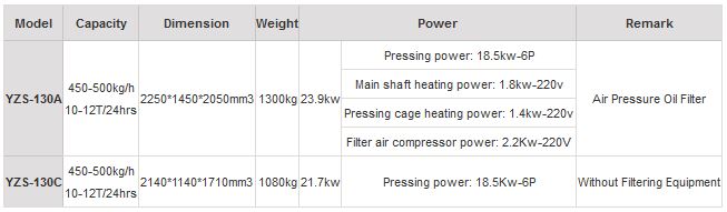 - Filtration device: Built with air pressure oil filter for pure crude oils (Only for YZS-130A integrated oil press)