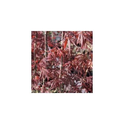 Acer Palmatum Burgandy Lace Red leaf maple with an upright rounded habit. Deeply divided fine foliage with fringed margins. Spectacular autumn tones of scarlet-red. A small tree with wide canopy. Well known and very popular variety. Deciduous. Cold hardy. Grows to H 3-4m