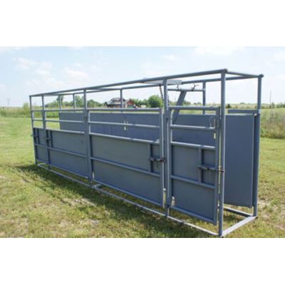 The Cattle Flow™ adjustable cattle alley comes complete with four gates. The gate on the exit end also swings in and locks to function as a pap cage. The two large center gates let you get a cow out quickly and easily if you have a problem. The small gate on the entrance end swings in or out and locks to isolate a cow in the alley or to divert one out before it gets into the alley.