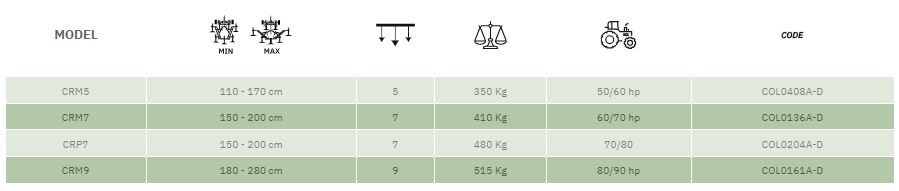 The adjustable hydraulic tiller with fixed shanks is designed for the cultivation of vineyards and orchards, thanks to the new hoes with tools code 40000. The machine is used for the summer and winter cultivations with maximum depth of 50 cm by using a single type of hoe and adapting to any working requirements.