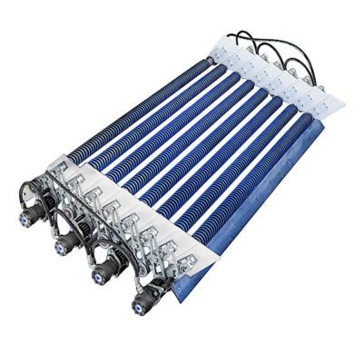 This adjustable roller set is for pre-cleaning and pre-grading the produce. This is the hydraulic version. Adjustable roller set are for pre-cleaning and pre-grading the produce. The produce moves over the rollers, while skins, dirt, and undersized products fall between the rollers. Depending on the application, the distance between the rollers can be adjusted. Rotations of rollers are controlled hydraulically. On demand, the adjustable roller set can be supplied in PU spiral, steel spiral, stainless steel, and diabolic rollers. Each roller set has unique qualities and applications. Depending upon product and soil conditions, the type of roller set is decided on demand. On demand adjustable rollers can be supplied as a stand-alone unit or mounted on a reception hopper.