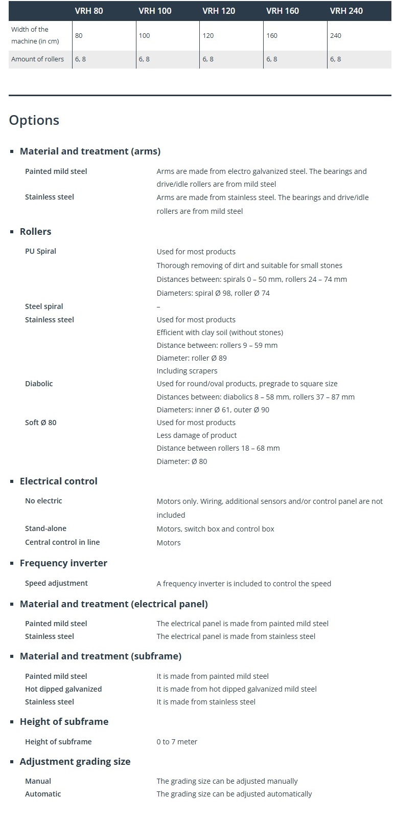 - Adjustable roller sets are for pre-cleaning and pre-grading