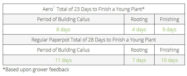 The Aero was designed for the production of young plants for rooting stations in Europe. The product was introduced into the Canadian market about 7 years ago and has been a developing success ever since. The possibility of watering the plants often, in combination with a fast dry down of the plug, creates the ideal circumstances to steer the growth of the plant, while the roots of the plants are never too wet. The dibble hole of the plug is filled with fine, soft peat which ensures optimal contact of the cutting with the plug. The Aero: fast development of callus, optimal root growth, great root architecture and less problems with mold.