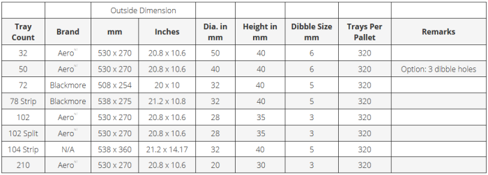 For large-leaved cuttings, AeroNT plugs can be distributed in the trays in custom patterns. Ask your sales representative for more information.