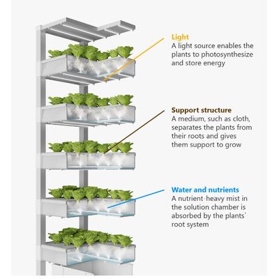 Vertical farming is the practice of indoor agriculture for growing crops in vertically stacked layers.WHAT IS AEROPONICS VERTICAL FARM?There are several types of vertical farms. However, after a year of research and a series of tests, we opted for aeroponics.Aeroponics is a technology that is much more efficient efficient than other vertical farm technologies.Aeroponics based on liquid solution with nutrients is misted in air chambers where the plants are suspended.This allows farmers to save up to 90% water and grow plants 25-35% faster than other types of systems.