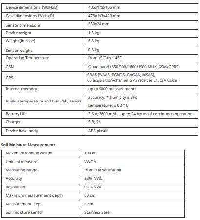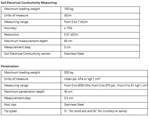 The accuracy and speed of data fixing at different depths, allows you to make the maximum of measurements with the least amount of time. Two types of tips - 1/2" and 3/4" for different types of soil, sensor of continuous measurement of the soil moisture and electrical conductivity are available.