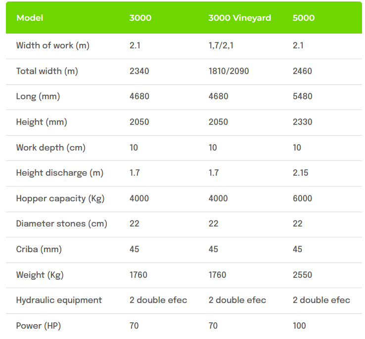 The continuous loading stone collector is the solution for the removal of any stone up to 30 cm in diameter. Ideal for agricultural application work such as the implementation of new landscaped, leisure or sports areas.
