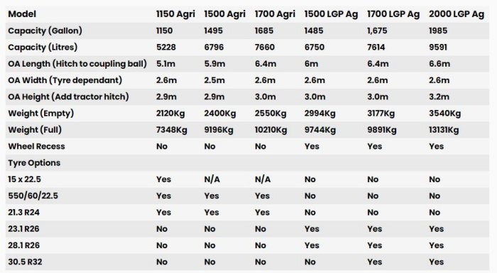 Major - Model 1150 Agri - 2000 LGP Ag -Agri Slurry Tankers