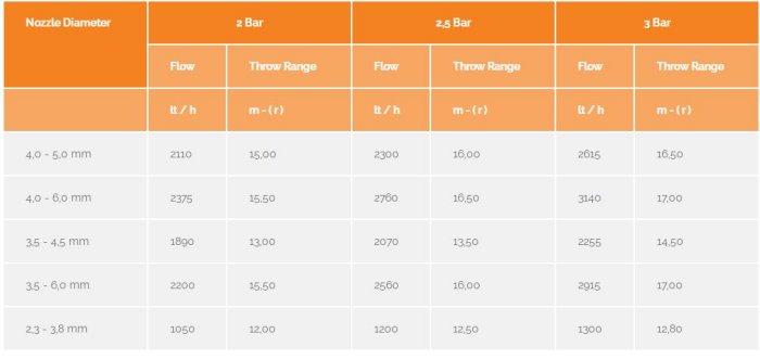 Erhas Agricultural Irrigation Sprinklers are produced of UV resistant strong plastic material with changeable nozzles in different flow rates. Thanks to the hardness adjustable stainless steel springs used in the manufacture of Erhas Sprinklers, it can work at all pressure rates, slow and fast circle speed easily. In order to perform easy and continuous rotation, it is provided with teflon bearing. With the advantage of distribution sections inside nozzle grooves and water spreading pins, it sprinkles the water as cyclone shape and in very small particles. Therefore it can irrigate the whole area without any non-irrigated space.