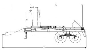 - Column-hook vertically extensible arm, operated by hydraulic cylinder.