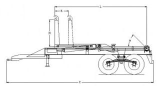 - Column-hook vertically extensible arm, operated by hydraulic cylinder.