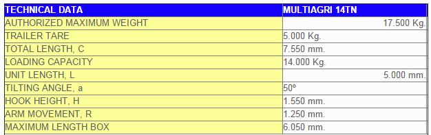 - Maximum Weight Technically Allowed: 17.500 Kg.