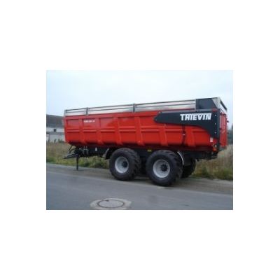 Height of extension for corn, aluminium (mm): 300. Volume with extensions for corn (m3): 24; 25; 27. Nominal unladen weight : 7893 kg; 8099 kg; 8070 kg. Thickeness of S355 sheet steel on the ; sides 4 mm. Thickeness of S355 sheet steel on ther floor 5 mm. Chassis cross-section 300x100x10. Axle: Bogey 26T square of 140, trailing axle. Hydraulic brakes: Drum 406x120. Original tyres: 18x22.5 R. Adjustable tow frame with leaf spring, 13 leaves. Ring 32 tons.