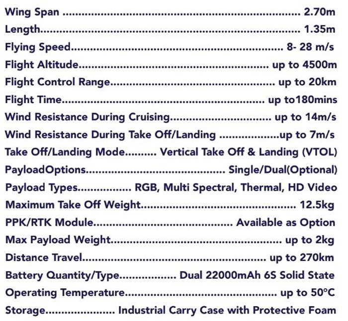 Designed and built with our years of experience developing VTOL drones, Aviro X1 is one of our best professional grade long range mapping and surveillance drone today. Combining best of both multi-rotor for vertical take-off and landing (VTOL) with extensive range of fixed-wing drone, X1 is optimized to perform long range surveillance missions. With strong yet light carbon composite body, X1 is capable of carrying multiple payloads. including triple lights thermal, 30X zoom and laser distancing camera.