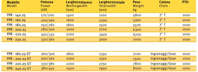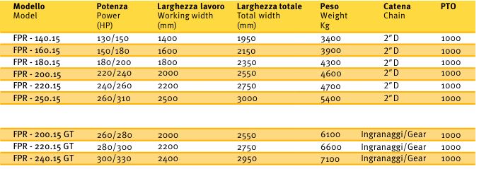 Rock cutters are machines designed to mill land with loose stones or outcropping rock for all agricultural purposes (arable, grass, vineyards, orchards, vegetable gardens, etc.) without the need for preliminary work. They can also be used as ground stabilising machines in the construction of squares, roads etc. Working depth depends on the model. FPR machines require a tractor with VARIO. They feature a rotor with interchangeable picks with Widia points. Depending on the model, machines have a chain or gear drive.