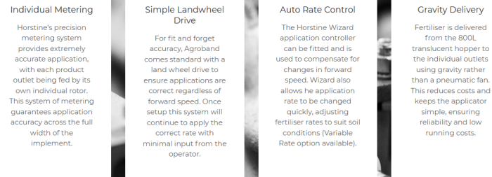 Mounted on the three point linkage at the front of the tractor, Agroband has become a byword for simple, accurate application of solid and bulk fertilisers during planting. Agroband is available in two versions: