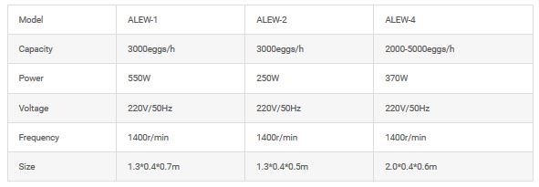 - ALEW-2 could wash 14pcs egg one time, capacity could be 3000pcs/h, bigger power, works more stable.