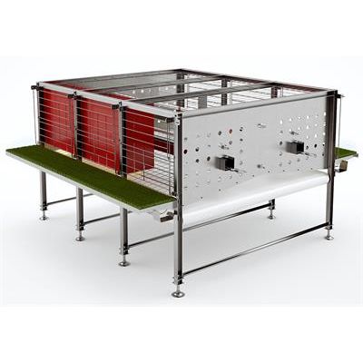 These enriched poultry cages are in complete compliance with European Standards and the authoritative livestock treatment regulations. The alternative cage system made by TEXHA contributes significantly to product quality increment. The extra space for the hen pasture ensures that the poultry`s psychological health is well maintained, thus resulting in an improved quality and quantity of eggs. The optional cage system is fitted with nests, sand containers, perches and green spaces with grass, all of which makes a comfortable living space for the poultry. The poultry housing has 3 perches to give your birds more free range. In addition, it is furnished with the appliance for cutting claws. This system uses an innovative energy-conservation mechanism to cut down on any unnecessary outlays.