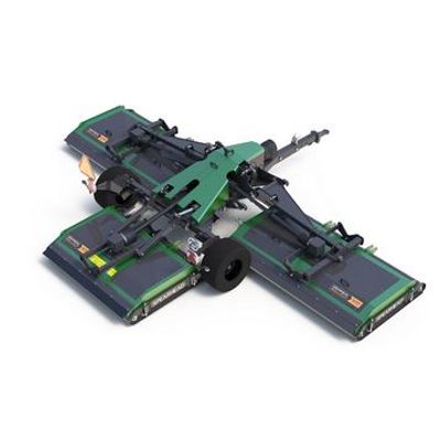 This Spearhead Rollicut triple gang range is available in either 5.0 or 6.0 metre cutting widths, featuring three, high suction styles blades per rotor designed to offer a comparable finish to conventional cylinder mowers; but without the expensive maintenance costs. The machine features impressive deck articulation following ground contours effectively to give a level cut and reduced scalping.